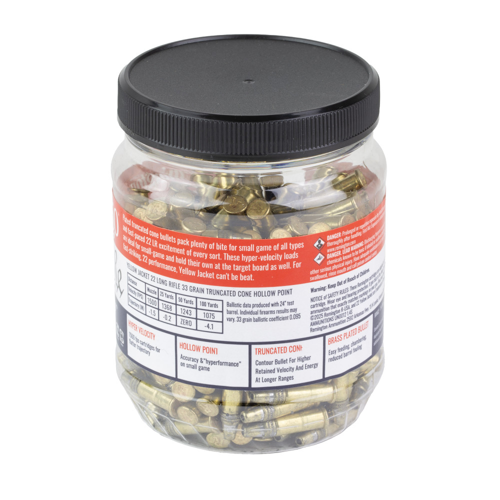 Remington Yellow Jacket, 22LR, 33 Grain, Truncated Cone Hollow Point, 250 Rounds per Box 21387