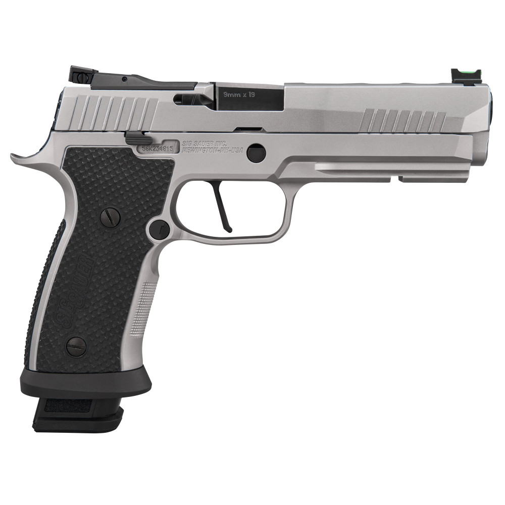 Sig Sauer P320 XFIVE SXG, Semi-automatic, Striker Fired, Steel Frame Pistol, Full Size, 9MM, 5" Barrel, Cerakote Finish, Silver, SXG G10 Grips, Fiber Optic Front and Adjustable Rear Sights, Optics Ready, 21 Rounds, 3 Magazines 320SXG5-9-STAS