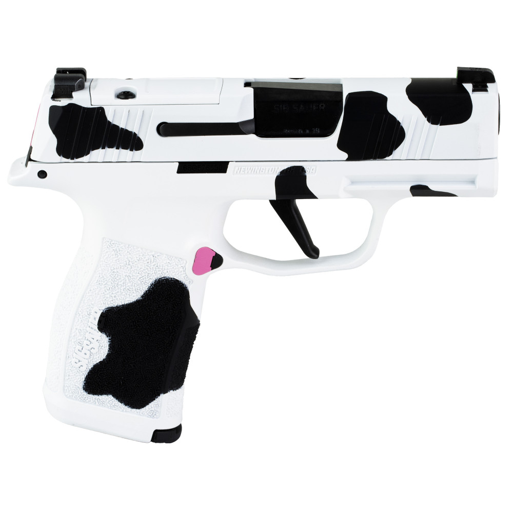 Sig Sauer P365X, Striker Fired, Sub-Compact, Polymer Frame Pistol, Subcompact, 9MM, 3.1" Barrel, Cerakote Finish, Custom Cow Print Cerakote Finish by SKYDAS, Fixed Sights, Optic Ready, 12 Rounds, 2 Magazines 365X-9-BXR3P