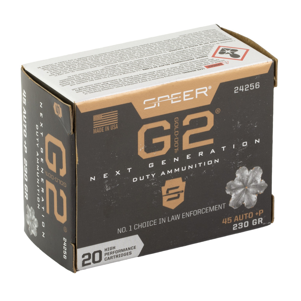 Speer Ammunition Gold Dot G2, 45 ACP, 230 Grain, Gold Dot Hollow Point, 20 Round Box 24256
