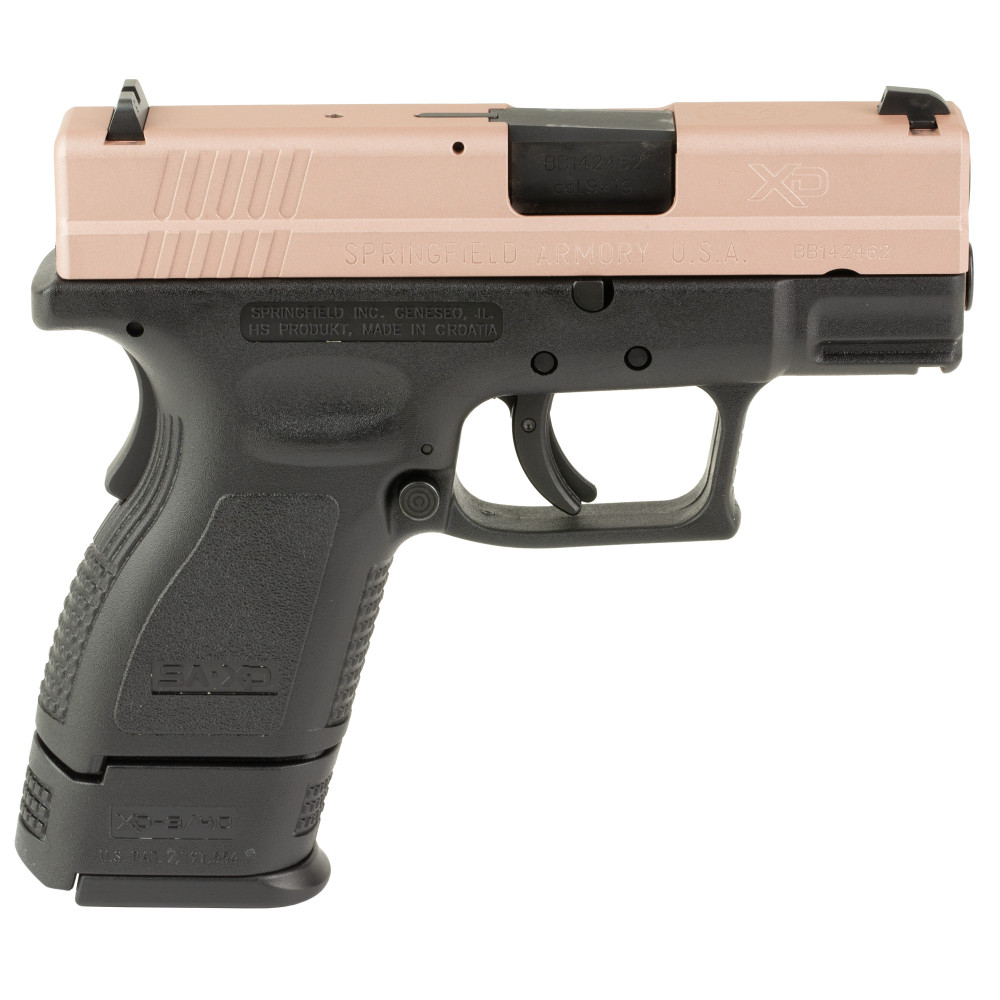 Springfield XD, Striker Fired, Semi-automatic, Polymer Frame Pistol, Sub-Compact, 9MM, 3", Custom Cerakote Finish by Shark Coast Tactical, Rose Gold Slide, Black Frame, Fixed Sights, 2 Magazines, (1)-16 Round & (1)-13 Round With Grip Extension, Right Hand XDD9801HC2FDESCT