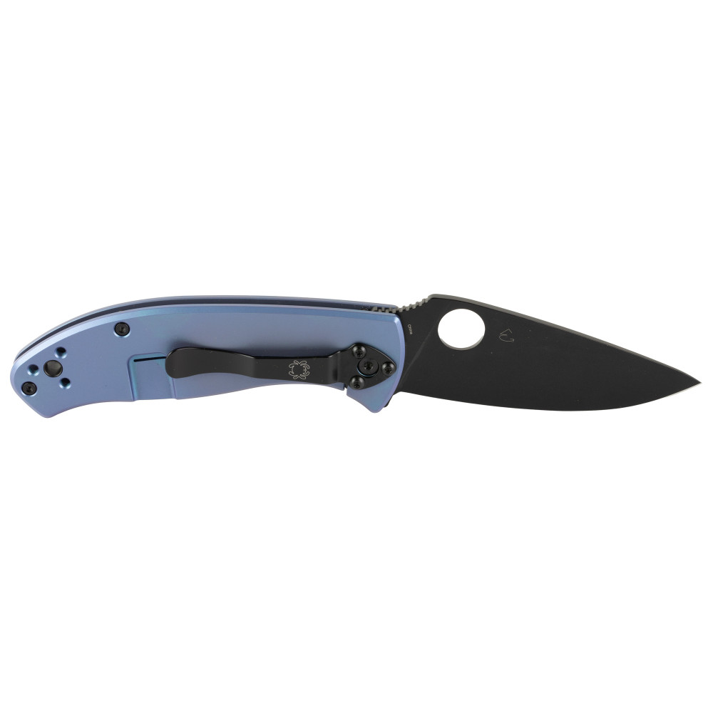Spyderco Tenacious, Folding Knife, 3.35" Drop Point Blade, 8Cr13MoV Blade Steel, 7.74" Overall Length, R.I.L. Lock, Black Oxide Finish, Black Blade, Blue Titanium Handle C122TIBLBKP