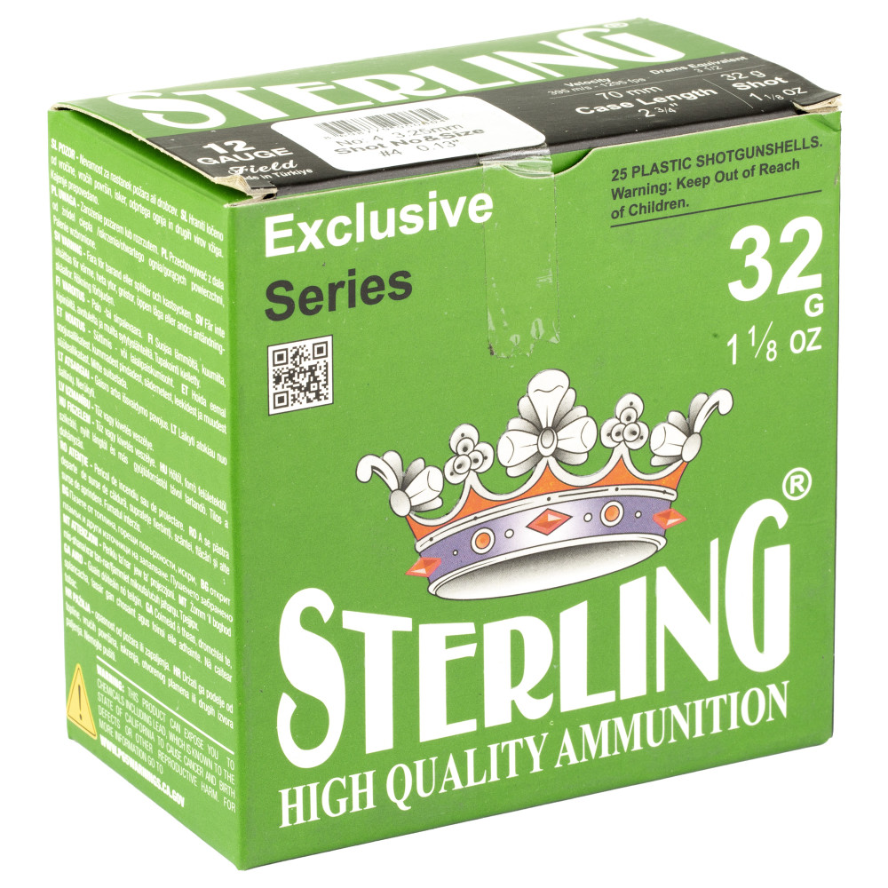 Sterling Exclusive Series, 12 Gauge 2.75", #4, 1 1/8 oz, Shot Shell, 25 Round Box 8698779950804