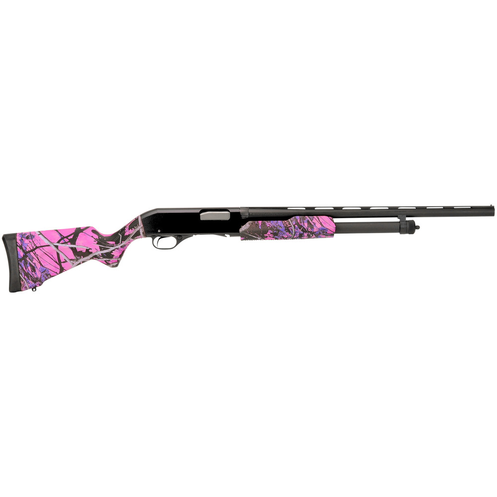 Stevens 320 Field Grade Muddy Girl Compact, Pump Action Shotgun, 20 Gauge 3" Chamber, 26" Vent Rib Barrel, Matte Finish, Black, Muddy Girl Camo Polymer Stock, Right Hand, Modified Choke, Bead Sight, 5 Rounds 22560