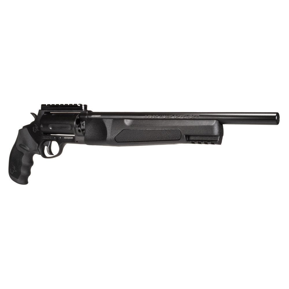 Taurus USA Judge, Home Defender, Double Action/Single Action, Metal Frame Revolver, 45 Colt/410 Bore, 3" Chamber, 13" Barrel, Cerakote Finish, Black, Picatinny Rail, Rubber Grips, Fixed Sight, 5 Rounds 2-JHD441013MAG