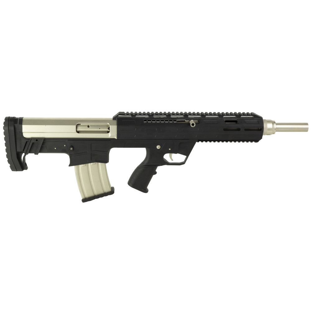 Tokarev Shotguns TBP 12M, Semi-automatic Shotgun, Bullpup, 12 Gauge, 3" Chamber, 18.5" Chrome Lined Barrel, Tsunami Finish, Black and Silver, Front/Rear Flip-up Sights, Includes 3 Benelli Mobil Chokes - Full, Modified & Cylinder, 5 Rounds, 1 Magazines 21000107