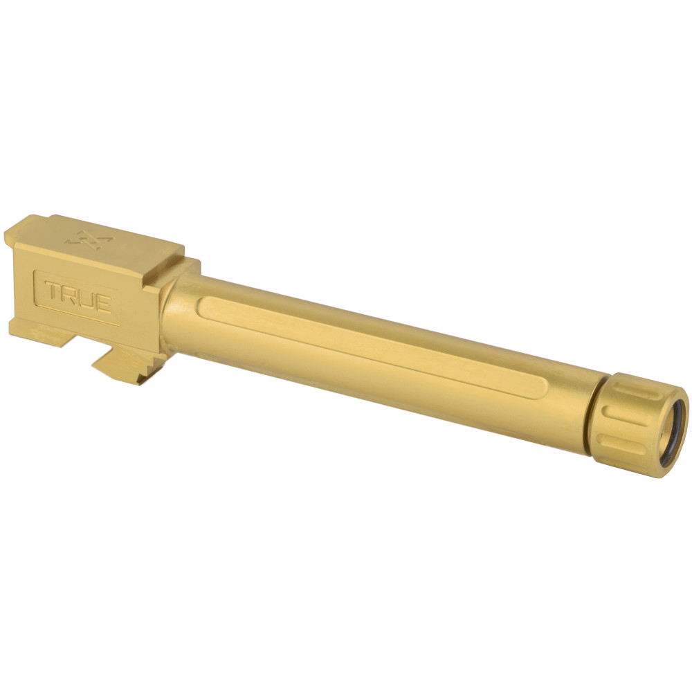 True Precision Barrel, 9MM, Gold, Thread Protector, Threaded, Fits Glock 17, Titanium Nitride TP-G17B-XTG