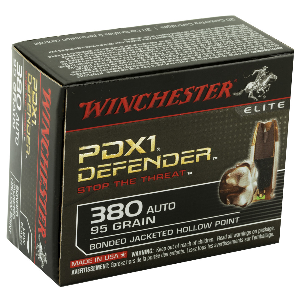 Winchester Ammunition Defender, Supreme Elite, 380ACP, 95 Grain, Bonded Jacketed Hollow Point, PDX1, 20 Round Box S380PDB