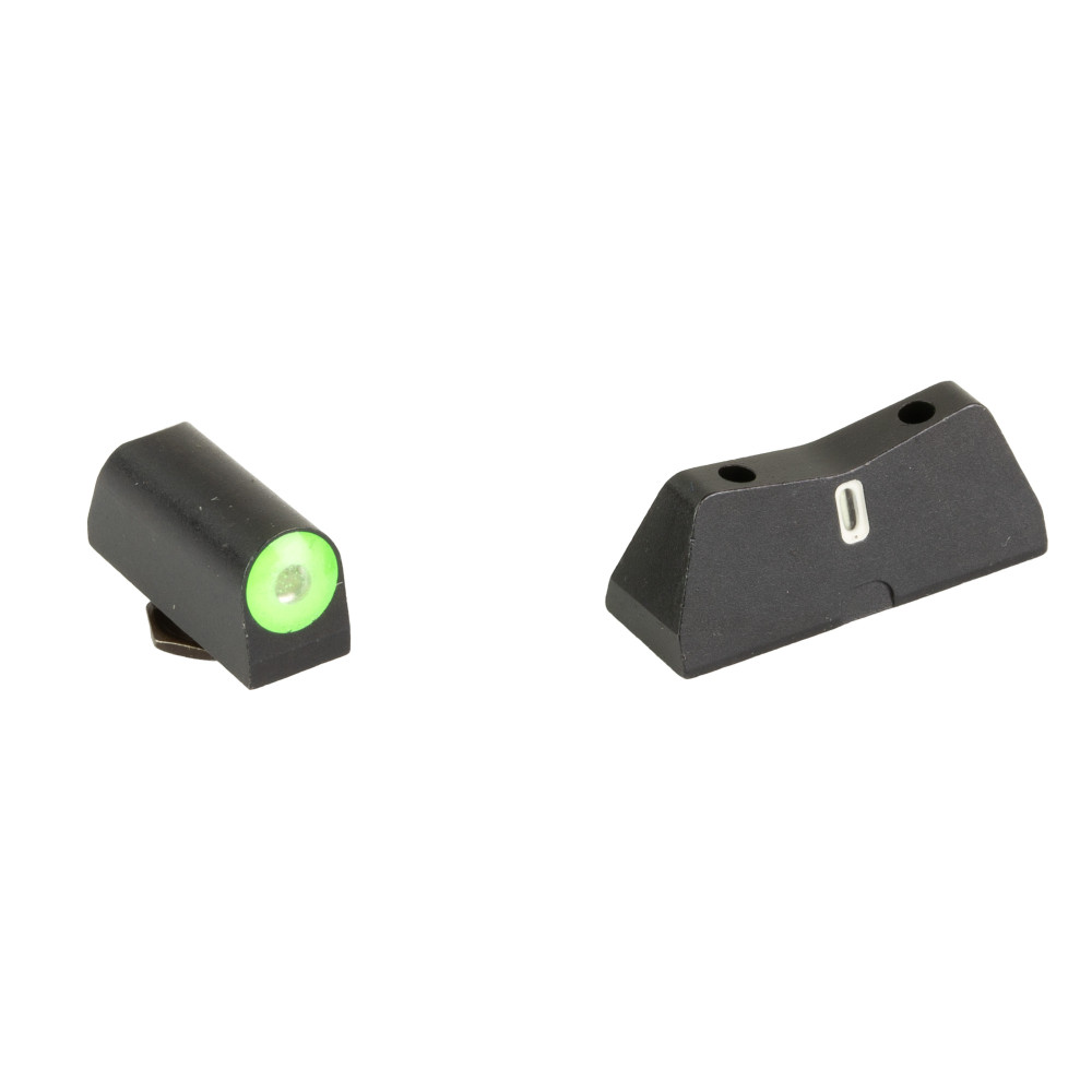 XS Sights DXT2 PRO Series Big Dot Night Sights offer the front sight visibility you expect from XS Big Dots with the added corrosion resistance of a Black Nitride finish and the enhanced durability of the tac lamp tritium vial in the Big Dot. DXT2 PRO Series Big Dot sights drive focus to the front sight using an industry-leading large, high-contrast front and a low-profile V-notch rear. DXT2 PRO Series Big Dot front sights use a glow dot that absorbs light and glows in low light levels before it is dark enough to see the tritium. The increased surface area of the convex dot increases light absorption, intensifying the charge of the glow properties of the dot. The aluminum-sleeved tac lamp tritium insert improves upon an already tough-as-nails front sight. The dot-the-i sight picture, with a tritium dot in the front sight and a tritium bar in the rear, prevents confusing the front and rear sight in high-stress situations. In most gunfights, the victim and attacker are both moving, and the victim's focus is drawn to the threat. The wide field of view increases visibility of the front sight and the threat downrange. Both sights feature a Black Nitride finish for enhanced corrosion resistance and durability. Outside Diameter Big Dot 0.188"; fits in common holsters. Do not use sight press/pusher tool. Fits Glock models 20, 21, 41, 40, - standard and MOS.